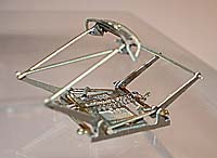 E’ fatto di tondini vari di ottone, molle di ganci Arnold e filo per cucire nero.